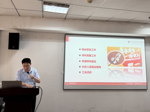 沈绍伟副书记全面梳理学院近期工作进展面对招生就业压力,鼓励教师积极参与招生宣传工作,共同提升影响力;学科竞赛取得良好成绩,部分项目仍需努力达成预期目标同时重点强调三项纪律要求:严守师德师风底线、规范学科经费使用、落实中央八项规定精神(严查违规吃喝等问题),要求全体教师令行禁止。